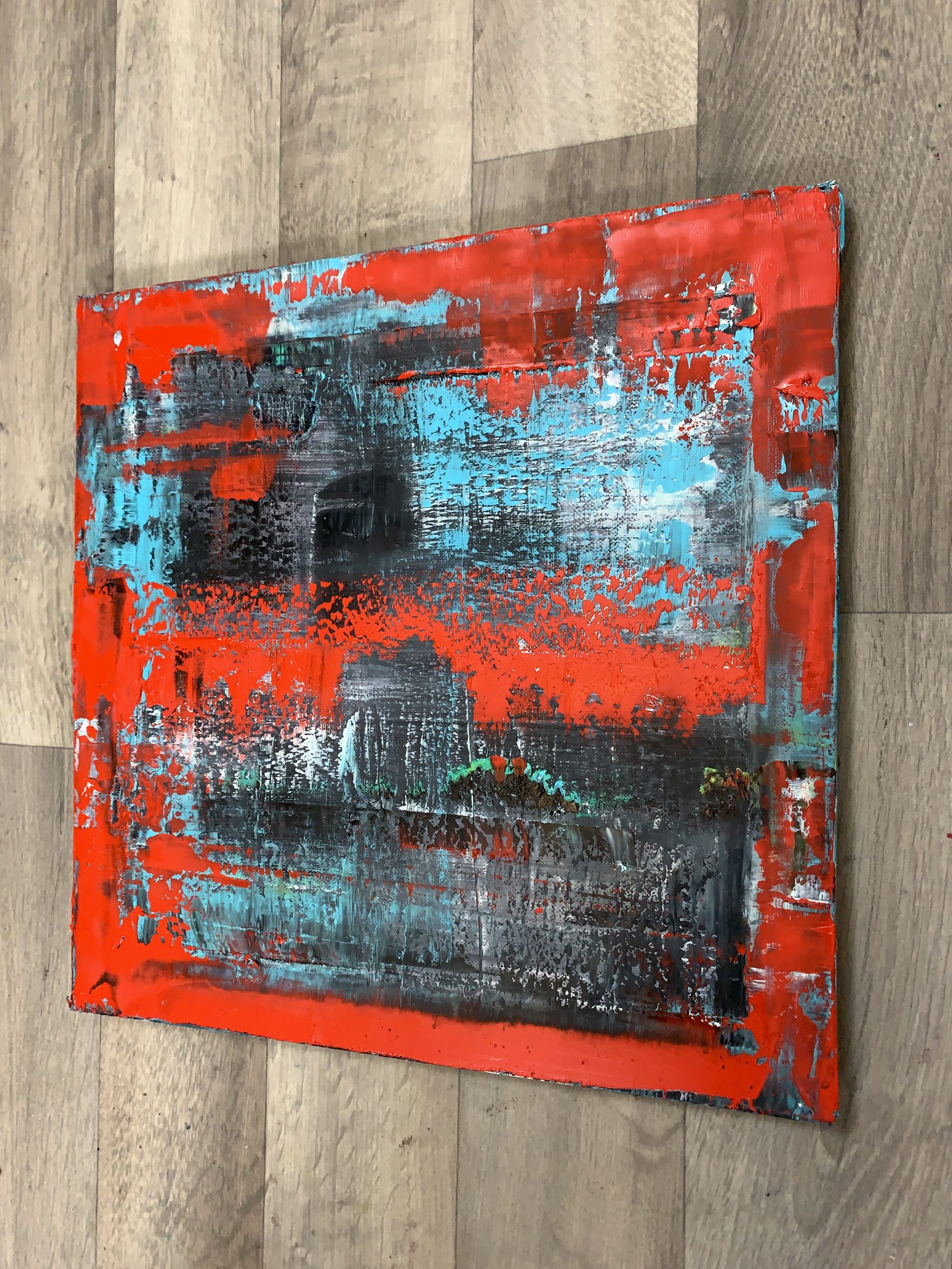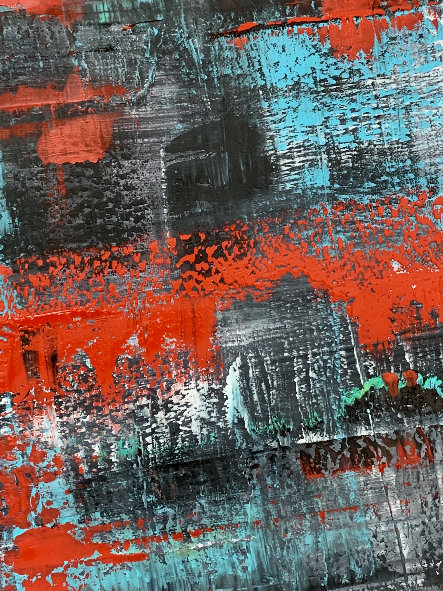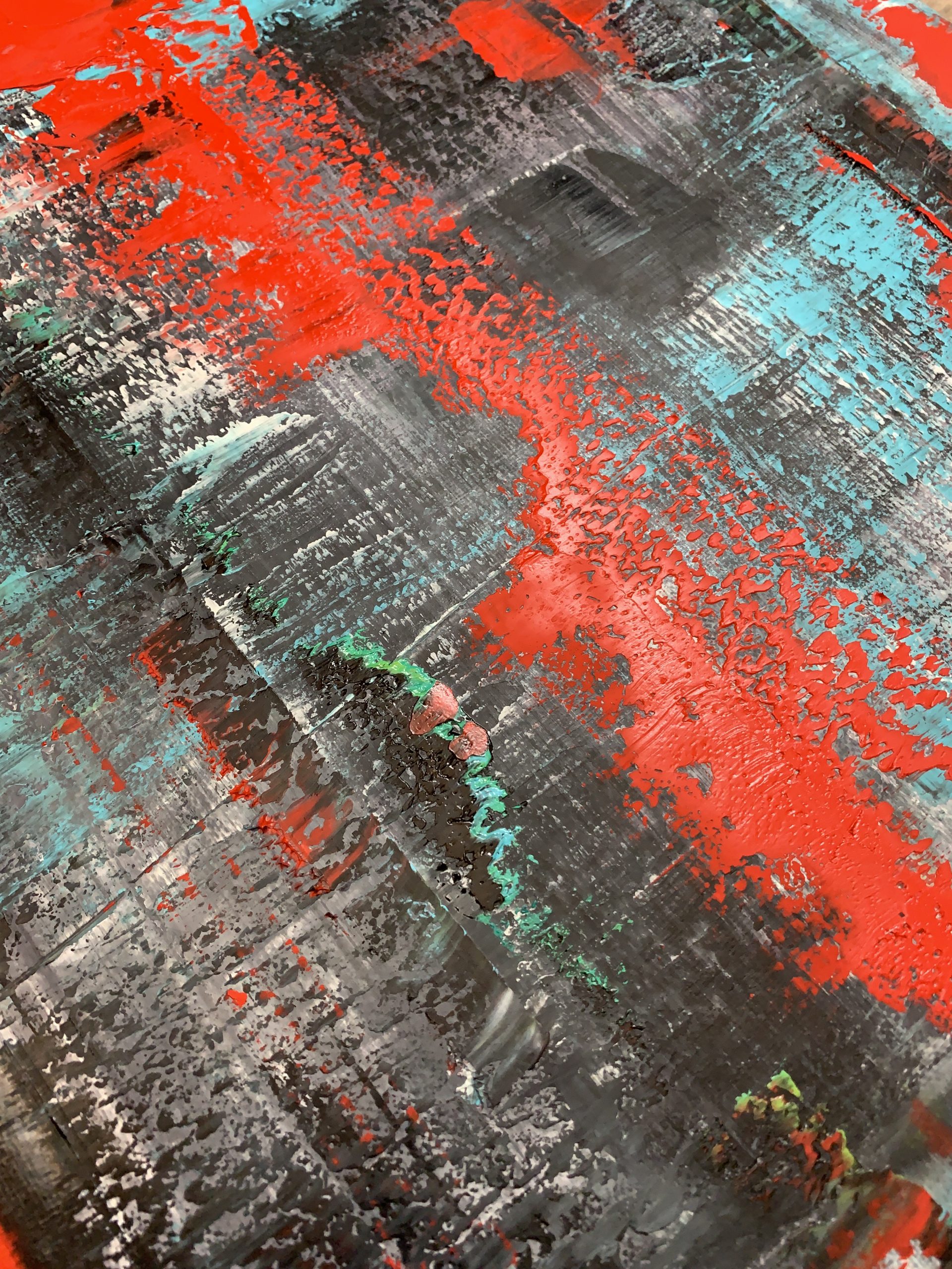 Abstract Painting straight from the artist’s studio Dobosz Modern Art Gallery. This is a multi-layered oil painting created with big palette knives, brushes and squeegees for a rich and varied texture. Some of the lower layers of paint remain visible, which gives the painting depth and three-dimensionality. The artwork is signed on the back.