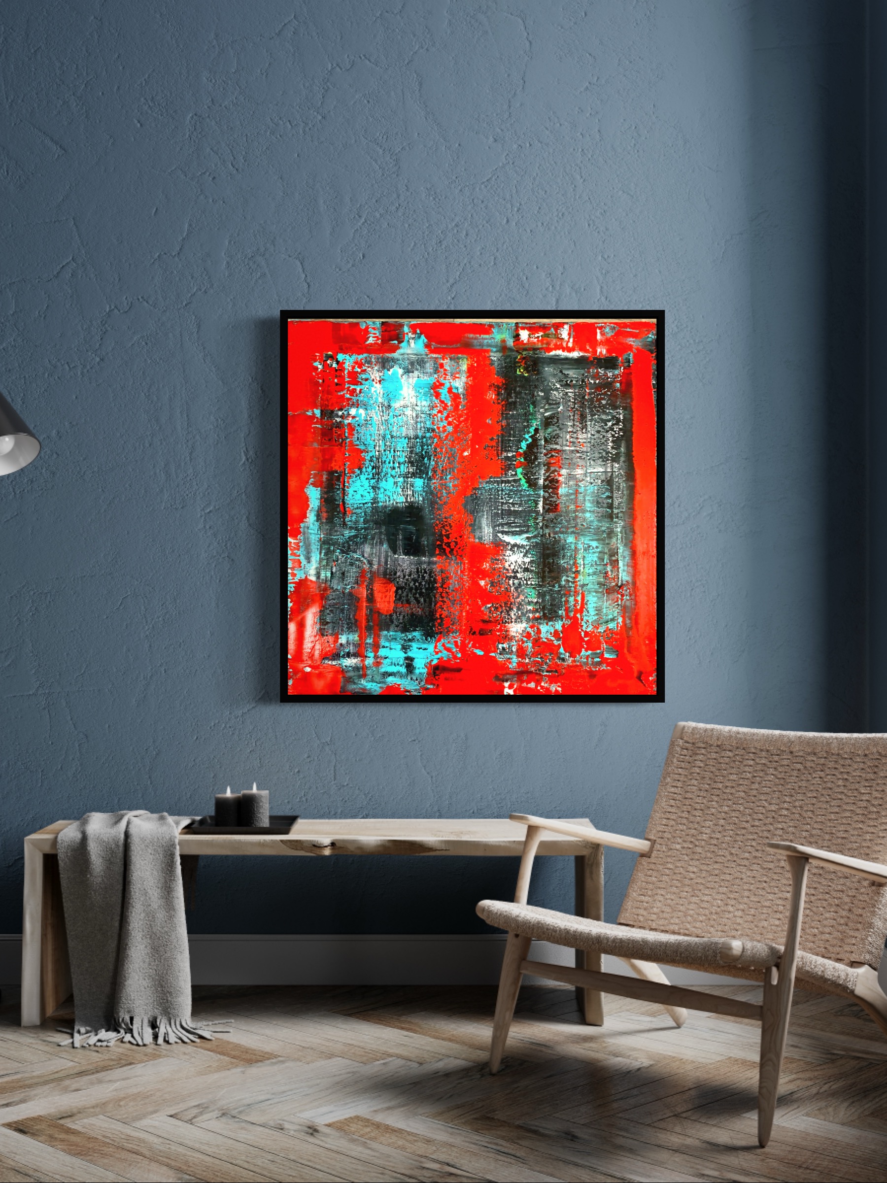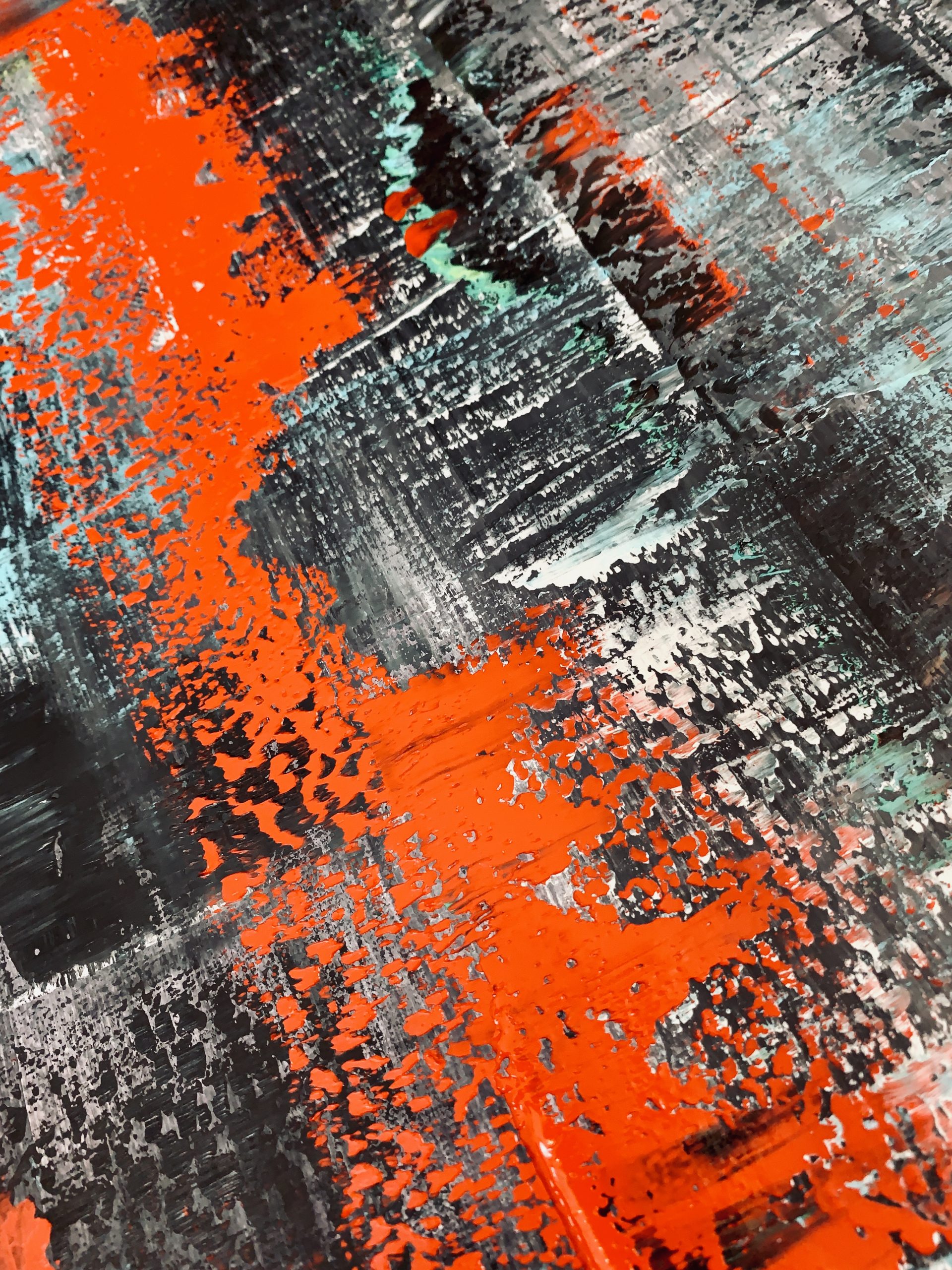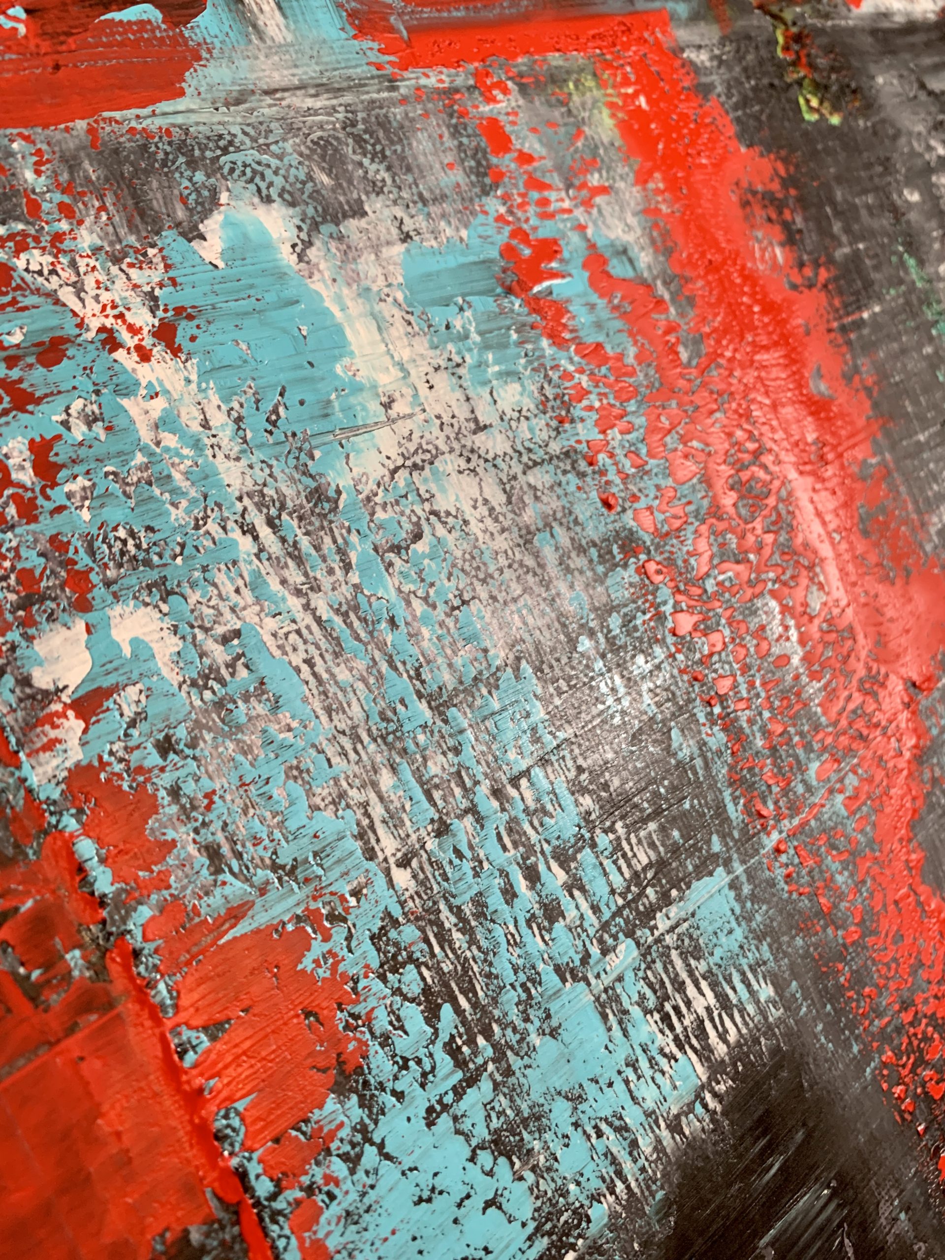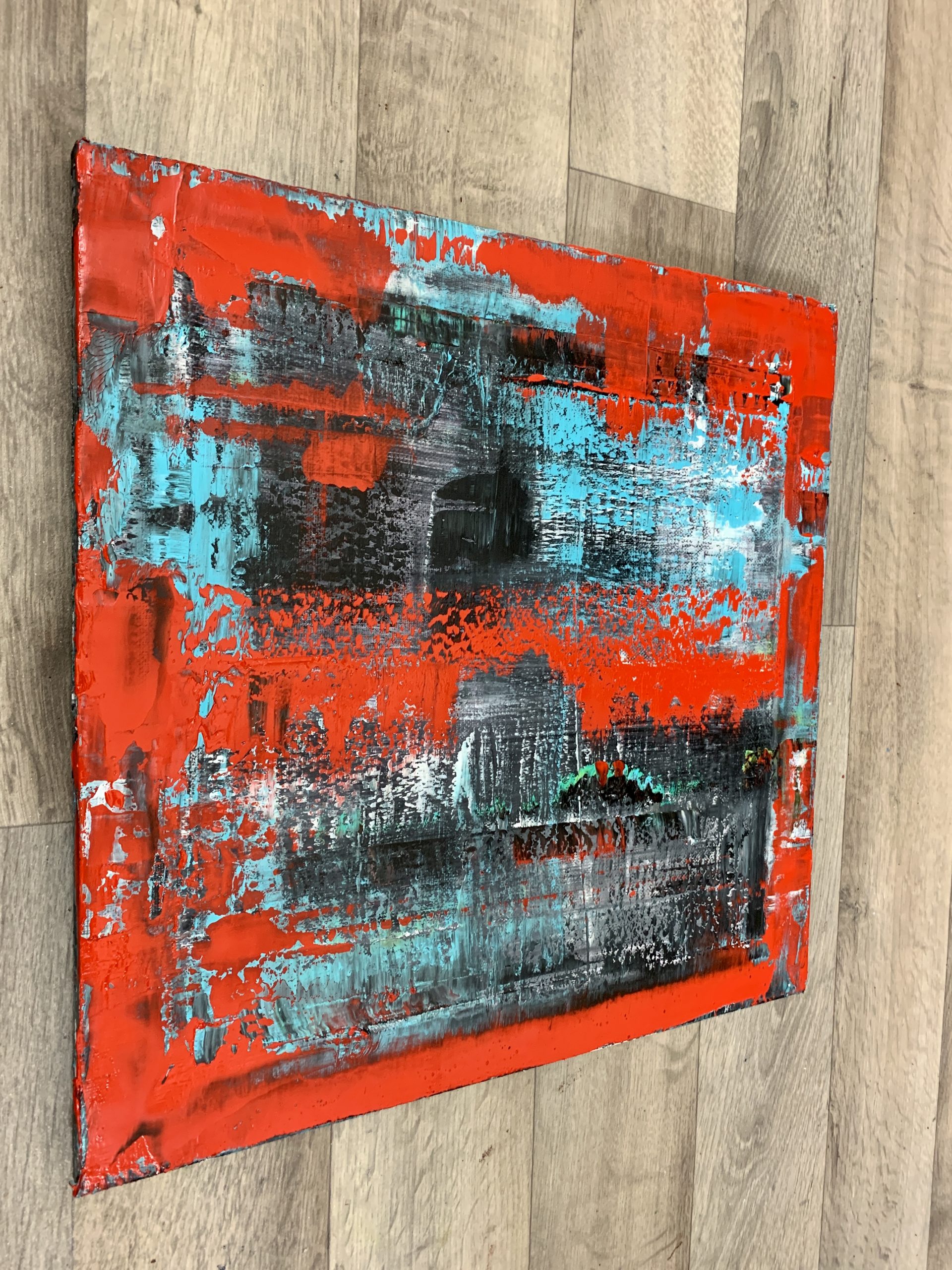 Abstract Painting straight from the artist’s studio Dobosz Modern Art Gallery. This is a multi-layered oil painting created with big palette knives, brushes and squeegees for a rich and varied texture. Some of the lower layers of paint remain visible, which gives the painting depth and three-dimensionality. The artwork is signed on the back.